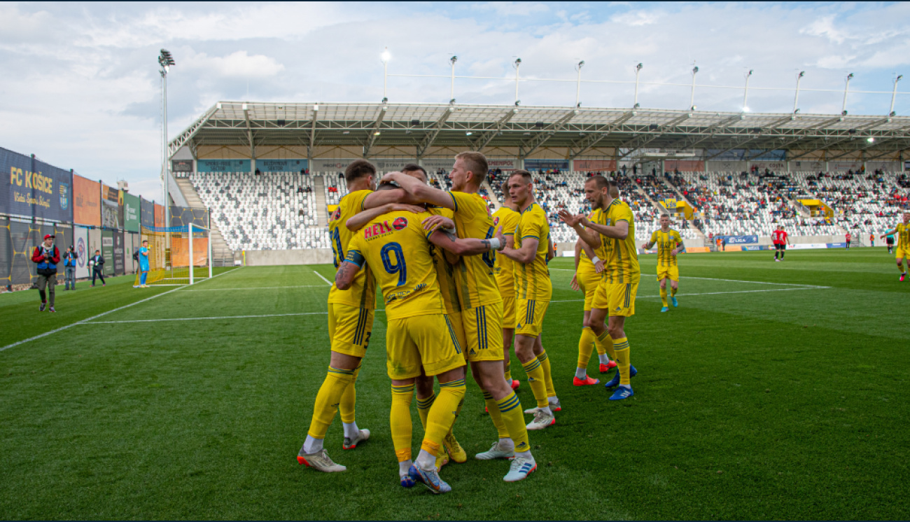 Zostava FC Košice I. polčas : Kira – Veselý, Šindelář, Magda – Petrák, Gallovič, Qose, Vasiľ – Turčák, Slanina, Liener